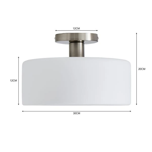 Introducing the modern, clean and bright design of the Amelie Opal Gold Glass Flush Ceiling Fitting featuring a contemporary white disc shaped glass shade sitting semi flush to the ceiling, ideal for hallways. The minimalist style of the Amelie Opal light is sure to coordinate with your current décor as it is available in a choice of satin-nickel or gold plated finishes.