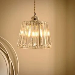 Featuring cascading crystal effect gems, this clear hanging pendant light fitting is available to purchase online. Easy Fit pendants are ideal for a quick style change without needing an electrician. Simply assemble on to your existing ceiling fitting, and you’re good to go within minutes! Don’t forget to choose the correct bulb for your ceiling fitting.