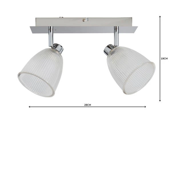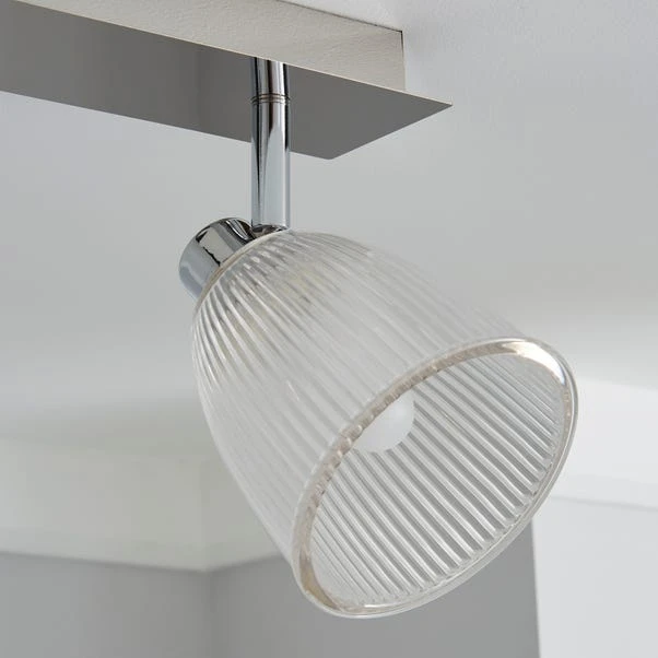 The Bremont Light features dimmable setting, adjustable heads with a stunning ribbed glass design and a chrome finish. Suitable for use in any room of the home.