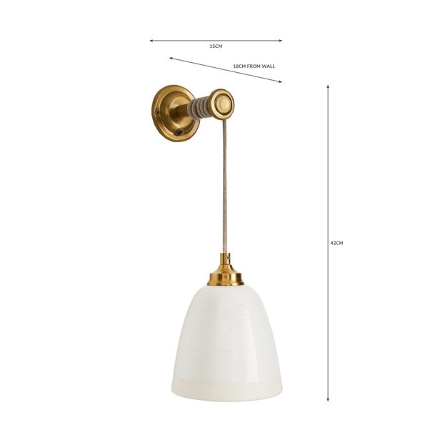 Introducing the Churchgate Harby Ceramic Easy Fit Plug In Wall Light, designed with a stunning White ceramic glazed head, finished in an antique gold metal and complete with a white twisted cable. Perfect for adding a modern touch to your home. Matching family items to help coordinate your dΓ©cor.