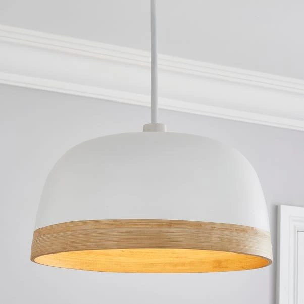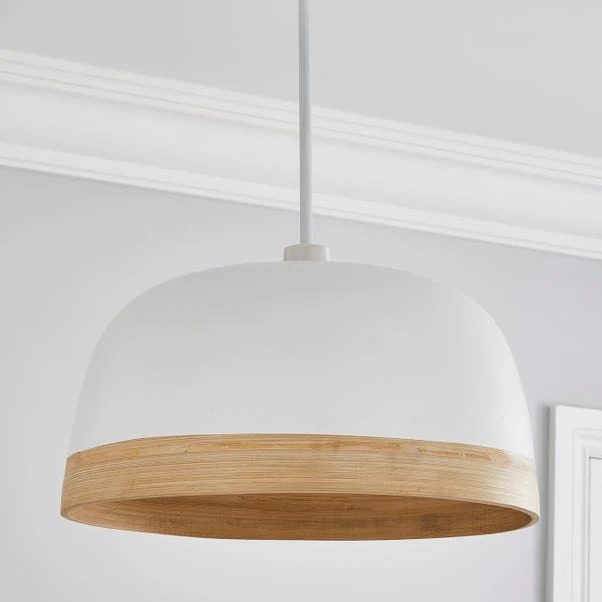 The Bamboo Easy Fit Pendant is the perfect way to personalise your room. Crafted from bamboo, this gorgeous dome shaped pendant features a matte black painted finish, complete with a natural bamboo trim. This stunning easy fit pendant is perfect for adding a natural touch to your home and great for brightening up your space. Easy Fit pendants are ideal for a quick style change without needing an electrician. Simply assemble on to your existing ceiling fitting, and you’re good to go within minutes! Don’t forget to choose the correct bulb for your ceiling fitting.