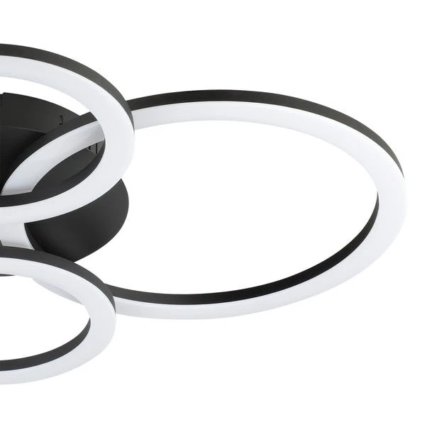Brighten up your space with the EGLO Parrapos-Z Large Flush Ceiling Light from the Connect.Z Smart Home range. Featuring four stylish round black LED profiles – two larger and two smaller – attached to the center of a round black steel base, this ceiling light blends sophistication with functionality.