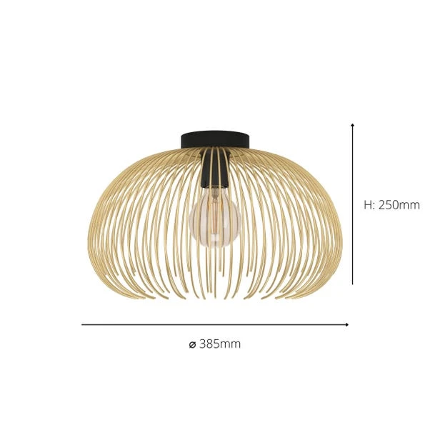 Meet your home’s newest must-have – EGLO’s Venezuela Flush Ceiling Light. Dressed in a beautiful gold colourway and featuring a wire design, this light’s shade curves harmoniously around the light bulb and creates a beautiful play of light and shadow when switched on.