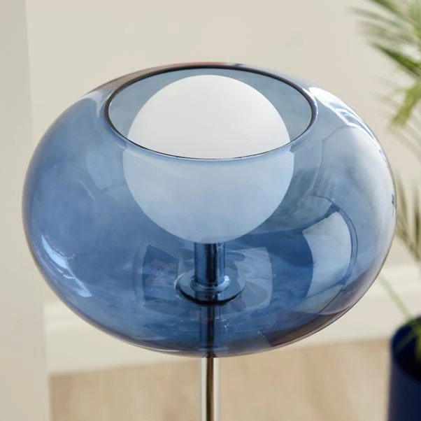 Featuring a gorgeous blue-coloured glass shade atop a polished chrome base, this floor lamp is a stylish and eye-catching addition to your home.