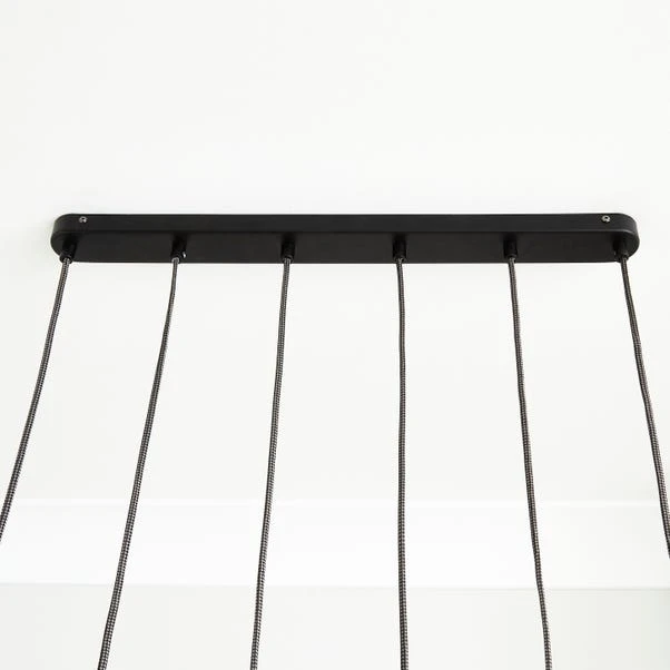 Make a feature of your lighting with this statement light. This stylish design combines an elegantly shaped shade with multi mixed size glass shades. The mixed coloured glass creates a soft, ambient light, whilst matte black metalwork delivers a classical look. The cable of each pendant can also be adjusted in height to suit your room.