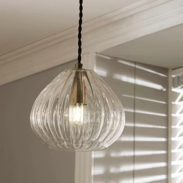 Bring this simple and effective light fitting to your space for a statement an atmospheric illumination with a clear yet decorative glass pendant. Featuring a teardrop shape, the clear ribbed design contrasted with satin brass metalwork offers a sophisticated yet modern look. The adjustable height allows this fitting to suit your space, however long or short of a drop you wish to display with.