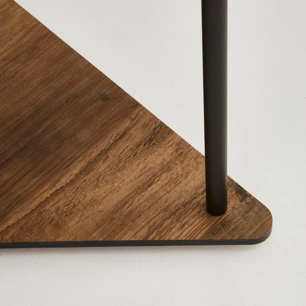 Are you missing that ‘something extra’ in your home? Well our Fulton Corner Shelved Floor Lamp might just be that. Featuring 3 spacious shelves for your home decorative accessories and a shelf which includes a built in lamp, encased in a stunning triangular white shade. The triangle shape can be pushed into the corner of the room providing you a large space saving solution whilst also making it look attractive and decorative. This lamp can easily be switched on and off switch a gentle press with your foot. The Fulton shelf floor lamp is finished in a rustic pine colourway to match any home interior.