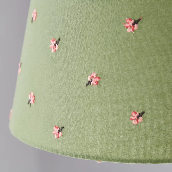 Illuminate your space with the Green Flower Embroidered Tapered Lamp Shade. The delicate green flower design with embroidered details adds a touch of nature to your lighting, and the reversible gimbal makes it suitable for ceiling, floor, and table lamps – a versatile and charming addition to any room.