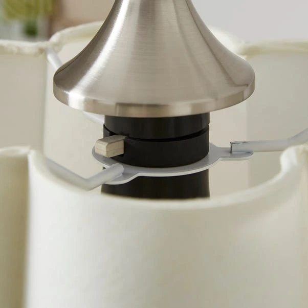 This stylish floor lamp features a petal-shaped shade and a gorgeous satin nickel metal frame; it’s a perfect blend of elegance and functionality for any living space.