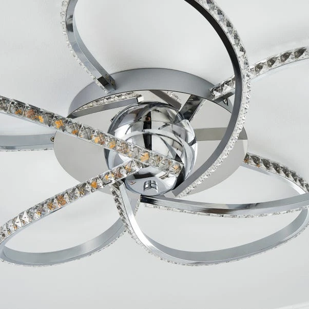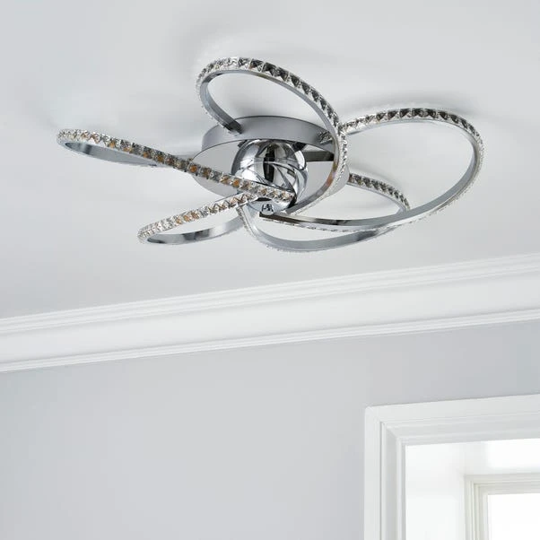 The luxurious flush the Oria Ceiling Fitting provides is perfect for hallways. With a stunning chrome finish, 5 x Integrated LED bulbs are included within the Oria Ceiling Fitting. Matching family items are available in the Oria range.
