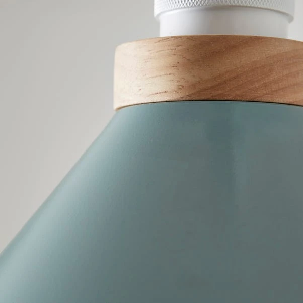 Charming scalloped edges and a matt finished metal shade with natural wood detailing make this pendant a delightful addition to any room. Easy to install – with no electrician required!