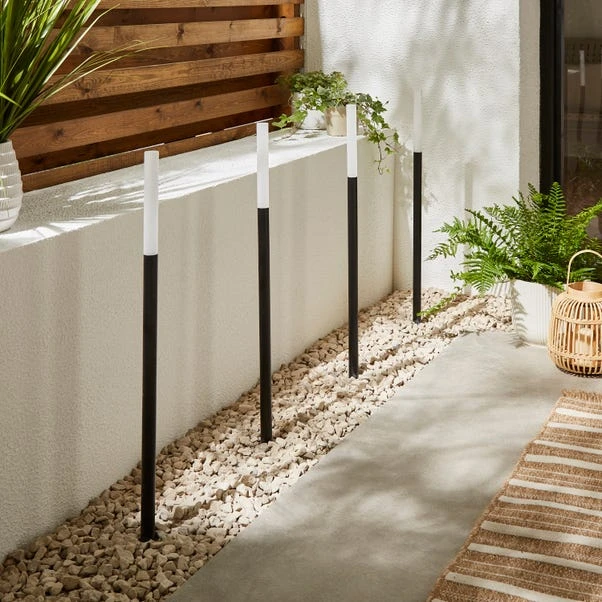 Illuminate your outdoor space in style with the Set of 4 Tube Stake Lights. Completely connectable – allowing up to four sets from one power source – these lights come complete with included stakes and feature a handy easy timer: meaning the lights turn on at the same time everyday, and last for up to 8 hours.