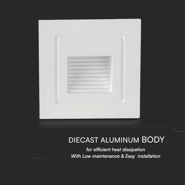 The Set of 4 V-TAC 3W LED Square Step Lights combine functionality with elegance, featuring a high-quality chip and power driver for reliable performance. Its robust aluminium construction ensures durability, whilst the elegant finish adds a touch of sophistication to any space.