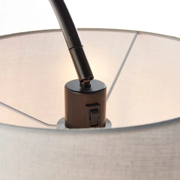 This relaxed modern style floor lamp boasts a modern matt black painted finish, supplied with a grey cotton mix shade for a traditional look. Featuring an easy accessible, yet discreet lamp holder on/off switch, this lamp is perfect for today’s contemporary living.