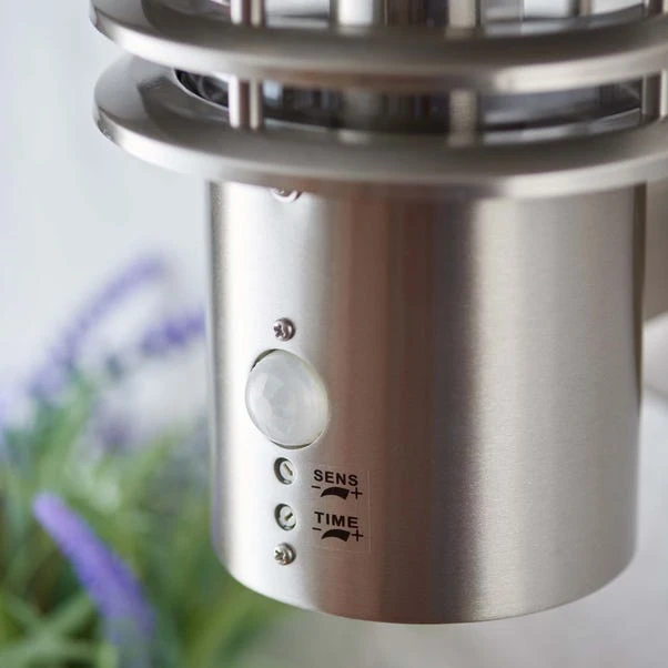 Featuring the contemporary characteristics of the Mullin Outdoor Wall Light, this piece is advanced with built in Photocell & PIR sensor for ease of use and maximum practicality as well as the option of having mains operation. Constructed from sturdy stainless steel and a clear polycarbonate shade, this modern light has a IP44 rating making it suitable for a wide range of outdoor spaces and is perfect for combining with other items in the Mullin range for a synchronised and coordinated look.