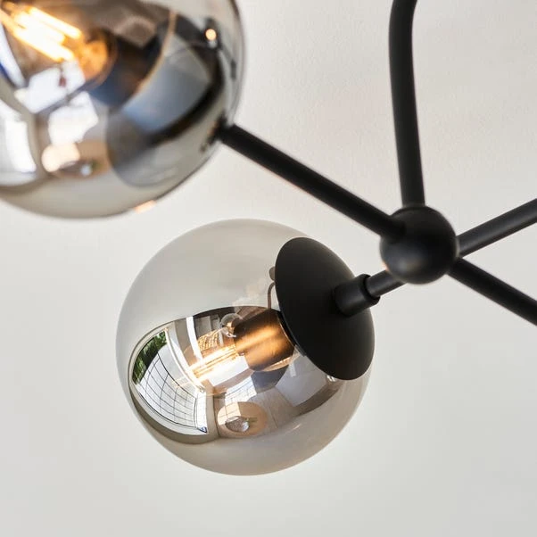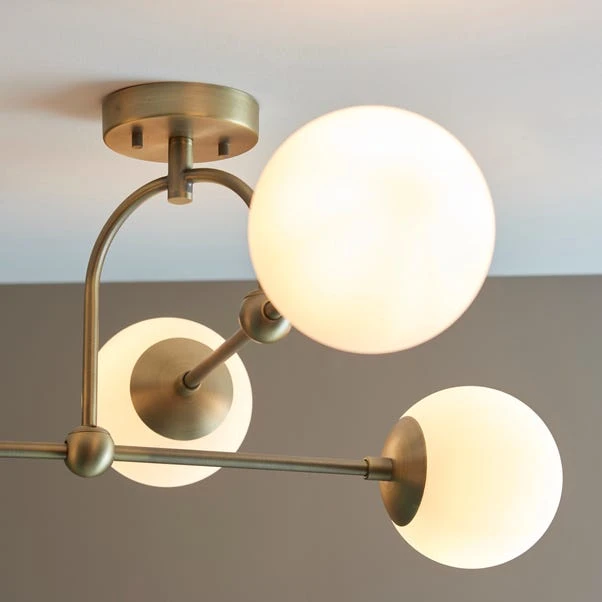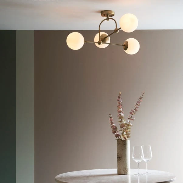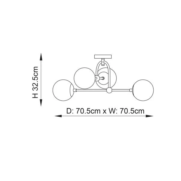 Illuminate your home with the unique design of the Vogue Lighting Newton 4 Light Semi Flush Ceiling Light. Mixing silhouette shapes with clean, strong metalwork and soft round glass shades, it adds a flair of sophistication to any room.