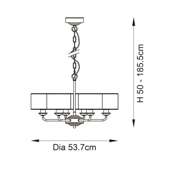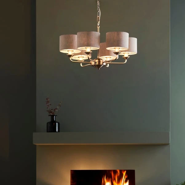 Our Sandringham 6 light pendant light defines classic elegance, offering a perfect fusion of timeless design and modern functionality. The meticulously crafted brushed chrome metalwork effortlessly complements the natural linen shades, creating a sophisticated and refined look. The matching metallic inner adds an extra layer of detail, enhancing the overall aesthetic. Ideal for those seeking a statement piece that stands the test of time, this pendant radiates charm and style. Compatible with a dimmer switch, it allows you to customise the lighting to suit different moods and occasions.
