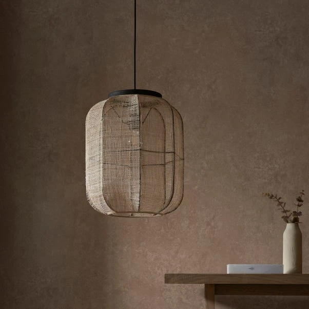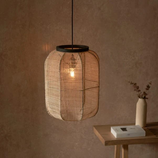 The exquisite handmade natural linen single Zen Pendant light is a perfect fusion of style and functionality. Crafted with meticulous attention to detail, this pendant features a sleek black painted plywood design that effortlessly complements any interior. The natural linen woven shade adds a touch of sophistication, diffusing the light from your preferred LED filament lamp. Compatible with a dimmer switch, this pendant allows you to create the perfect ambience for any occasion.