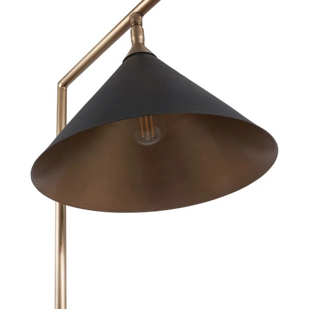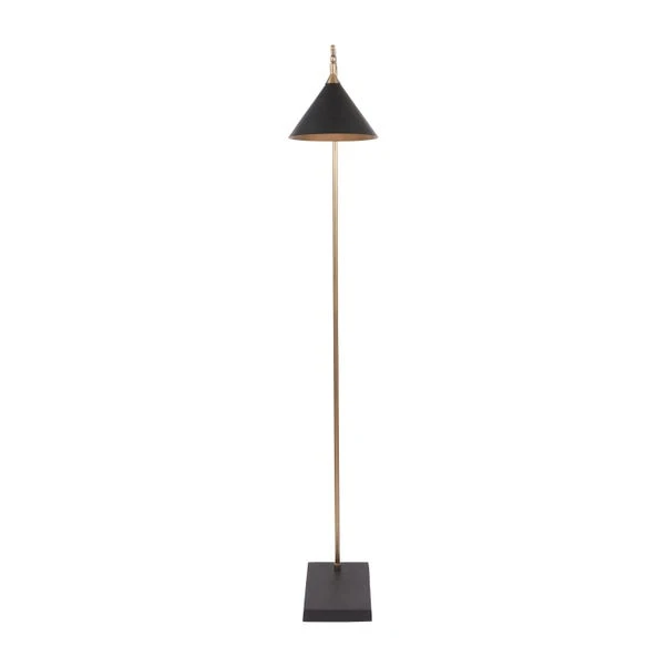The Zeta Matt Black and Antique Brass Floor Lamp adds sophistication to any interior with its sleek metal construction and moveable head. Direct light exactly where you need it with its fabulous conical shade, enhancing the ambiance of your space.